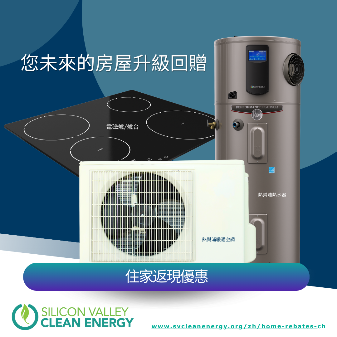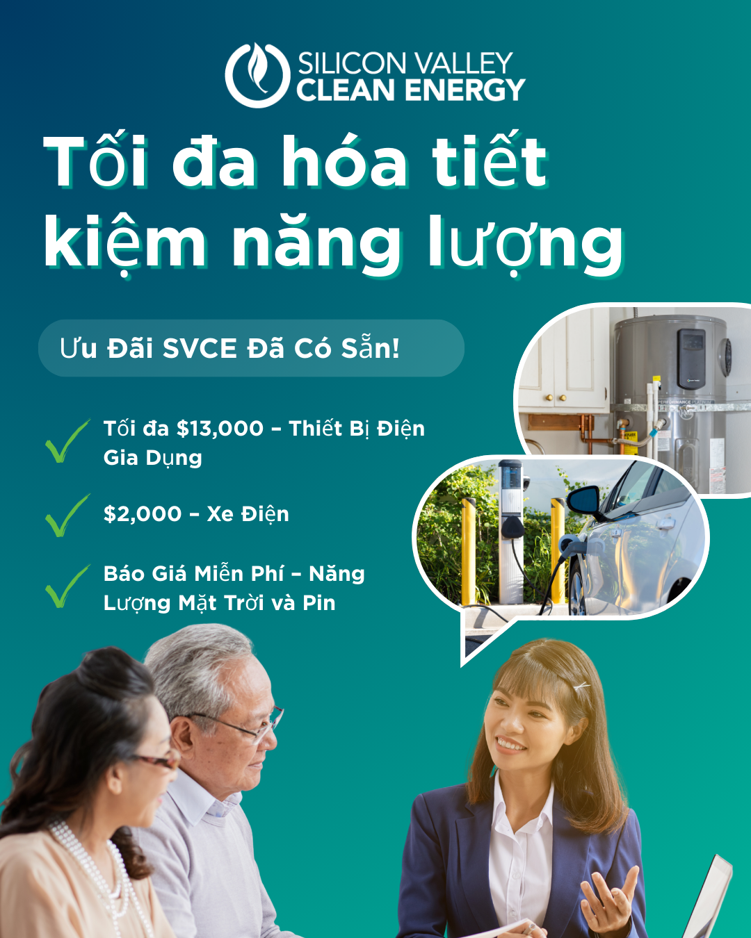 Tiết kiệm với khoản hoàn tiền lên đến $13,000 từ @svcleanenergy để thay thế các thiết bị cũ sử dụng gas của quý vị với các thiết bị sạch, hiệu quả năng lượng và hoàn toàn chạy bằng điện!